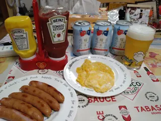 ネコとおつまみ お昼ごはんが遅かったので晩はこんな感じでした😁