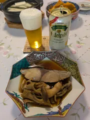 エーデルピルス✕スジガツオと舞茸とエリンギの炊いたの