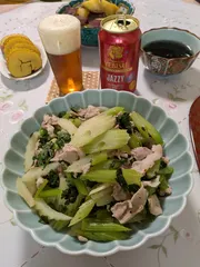 JAZZY✕豚肉とセロリの塩炒め JAZZYで乾杯🍻 一昨日、今年初のJAさんにお買い物🚗店内をぐるりと回っていましたら、お~?セロリ発見✨👀。久しぶりに炒め物だ~!(^^♪豚肉とセロリの塩炒め、さつまいもの炊いたの、伊達巻き、そして黒豆をいただきました美味しかったです ご馳走さまでした🙏
