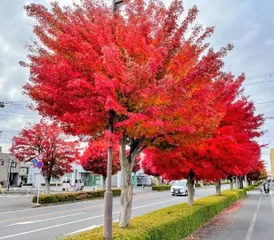 秋🍁真っ盛り お買い物に出掛けた時に秋🍁を見かけました別の木は黄色に色付いていて、足元には落ち葉🍂も…身近で感じられる秋です🥰