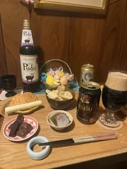 1年待ちました〜🌸😋 大好きな梅園の道明寺🌸この時期しか食べられない大好きな❤️和菓子🍡待っていましたーーーー🙌🏻変な時間に🍙食べてしまったので夜は スゥィーツ&乾きもので🍺お初の リスカの納豆チップル意外とイケる〜🥰黒YEBISUやハーフ&ハーフにしても合います🍻おせんべいやさんの黒胡椒せんにはストリン