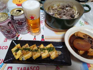 今回はこんな鍋つゆですサクラビールもちょっと甘さを感じながらおいしくいただきました😋