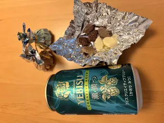 横向きで失礼します😋 小さい葉っぱ🌿の形のチョコホワイトや抹茶ダークだったり ミルクだったり色んなお味が 楽しめます薫満つで🍻🍻😋