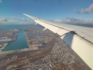 先日の札幌行き、北海道・苫小牧港、上空より✈️