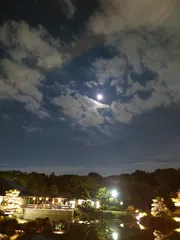 観月の灯り 日没と共に幻想的な光に包まれる日本庭園。観月とは、中秋の名月を観賞すること。2025年の中秋の名月は10月6日です。日没と共に月が織りなす幻想的な空間で、月を愛でる特別な時間をお過ごしください。(日本庭園H.Pより)昨夜は日本庭園から美しい月を観ました。写真では伝えられない、ぽっかりと浮かんだ月。今
