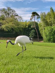 タンチョウの園内散策 今日の午前9時から1時間ほど、岡山後楽園にてタンチョウの園内散策が行われました。2回の飛翔は優雅で感動的でした✨鶴は千年、亀は万年という縁起の良さをお届けします😊