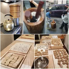 🍚お餅つき🍚 今年も餅つきが無事に実行出来ました🎵 普段なかなか会えない友人たちと久しぶりに集い、料理やお酒を持ち寄って良い年末を過ごしました。良いお年を‼️🎍 SPAMおにぎり、フライドポテト、ビーツのサラダ、漬け物とポテサラ、鶏肉に栗やプルーンを巻いてロースト、トリュフ風味のピンチョス&n