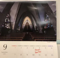 GREENBEERDAY 19日銀座ライオン池袋西口店の帰りレジ前で夫がカレンダーをパチリ いいのかな?ここにはアイリッシュパブタブリナーズさんがあります9月4日はGREENBEERDAY みどり色のビールを飲む日なんですか?そういえばこのチャペル見た事あります😓💦