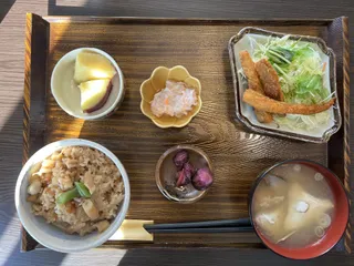 JF直営漁港食堂「魚津丸食堂Diner」で「バイ飯定食」。😋 お昼は、漁港近くのJF直営の食堂、「魚津丸食堂Diner」で名物「バイ飯定食」。 シー級グルメ選手権で優勝したことのある、名物魚津バイ飯に、ヤガラのフライやアラ汁も付いて、リーズナブル。😋 店長も明るく、いつ来ても大満足な食堂。😻