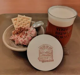 COPPER HORIZON&ポテトサラダ 今年初めてのYEBISU BREWERY TOKYO🚃COPPER HORIZON🍺とYEBISU BEER TOWN会員対象の限定クーポンでポテトサラダ🥔もちろん2月のバッジのチェックイン(8ヶ店目)も完了😆