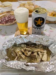 NEW 黒ラベル✕鱈ときのこのホイル焼き 黒ラベルで乾杯🍻少しお肉が続いていたのでお魚食べたいな~🐟️といつものスーパーのいつものお魚コーナーをうろうろ🚶♀️🚶♀️➡️ちょうどきのこが安売りしていたからホイル焼きにしようかな。。と言うことで、鱈とほたるいかをお買い上げ🐟️🦑ほたるいかは湯掻いたら目と口、軟骨を取る作業をひたすらして。。