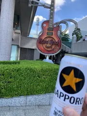 NEW Hard Rock🍺 横浜のHRC看板ギターは2024年3月のリニューアルで青に変わりましたよー☺️🎸(みなとみらいさん)サンバーストのが落ち着きますけど青もサワヤカでいいですよね🔵🍺