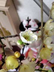 今年も岡山後楽園で剪定された梅の枝を購入しました。去年は紅梅だけだったけど、今年は白梅の枝を選んで紅梅とともに購入しました。紅梅に先駆けて白梅が一輪開花しました✨紅梅の蕾も大きく膨らんでいます😊 まだまだ寒いので体調に気をつけて健康にお過ごしください。 うさでこさん、体調良くなっ