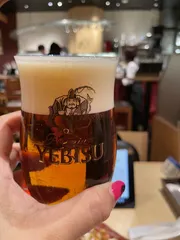 今年初のYEBISU BAR へ🥰❣️半額クーポンを使用しJAZZY🎶で乾杯🍻おつまみに安納芋のゴルゴンゾーラ焼きを頂きました🧀こりゃビールがすすむ☺️おみくじを引いてみたくて🎯ジョッキ🍺でプレミアムエールを頼んでみました‥以前一度だけ琥珀をジョッキで頂いた事はあるけど、エールは初めて‥ずっしり重い